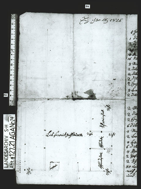 2. Stellau, Altes Pastorat, Verlängerung des Wirtschaftsteils um zwei Fach, Grundrissskizze 1826 (Landesarchiv Schleswig)